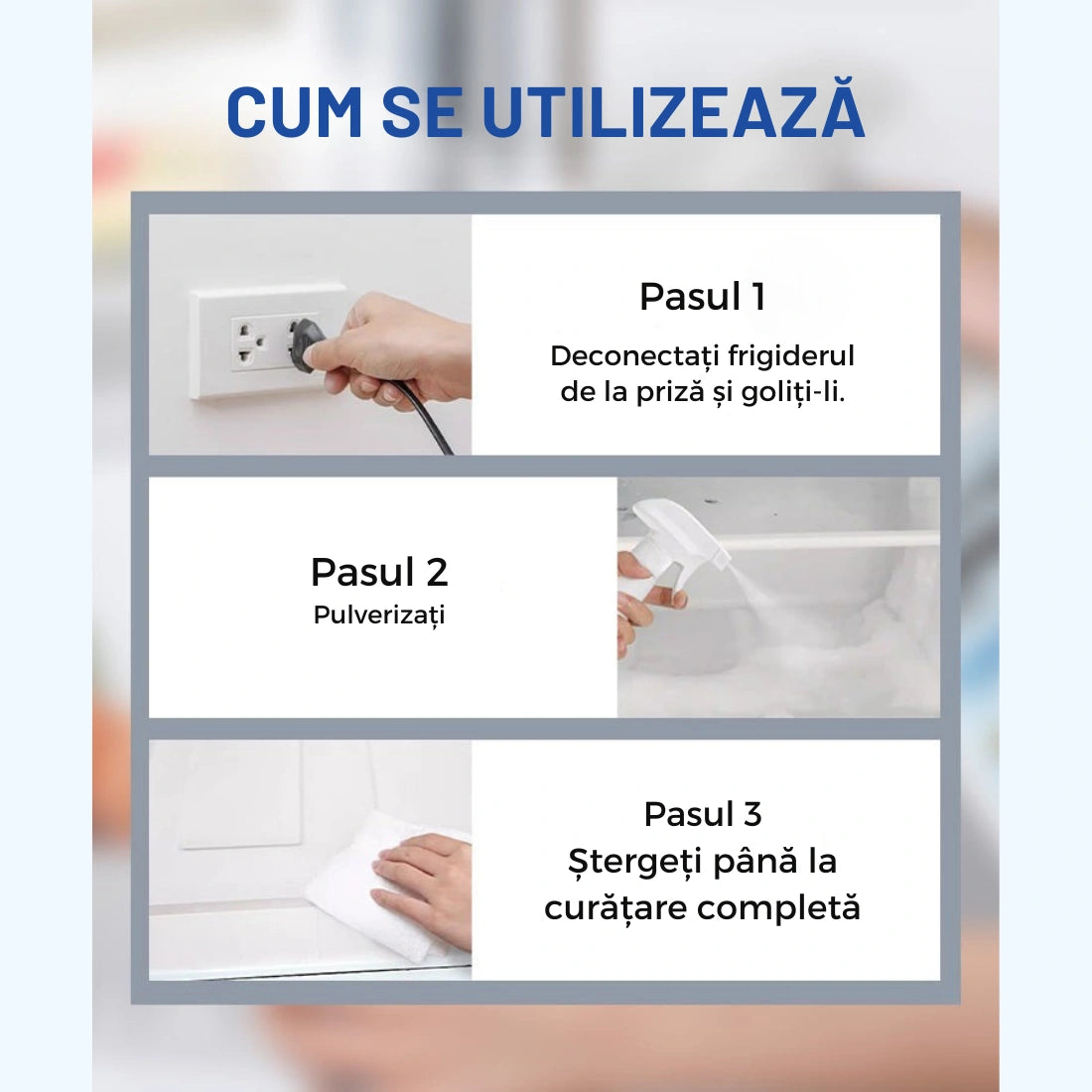 „FrostEx™ îndepărtează gheața din congelator în câteva minute. Nu mai pierd ore întregi să curăț manual.”