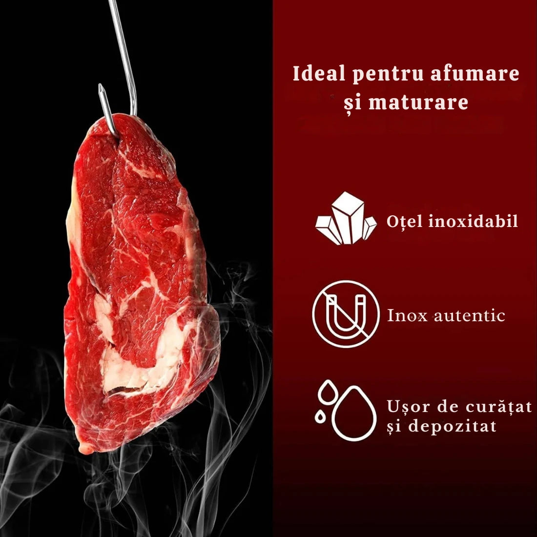 „Carnea stă aerisită și nu se atinge. Afumarea iese uniform de fiecare dată.”